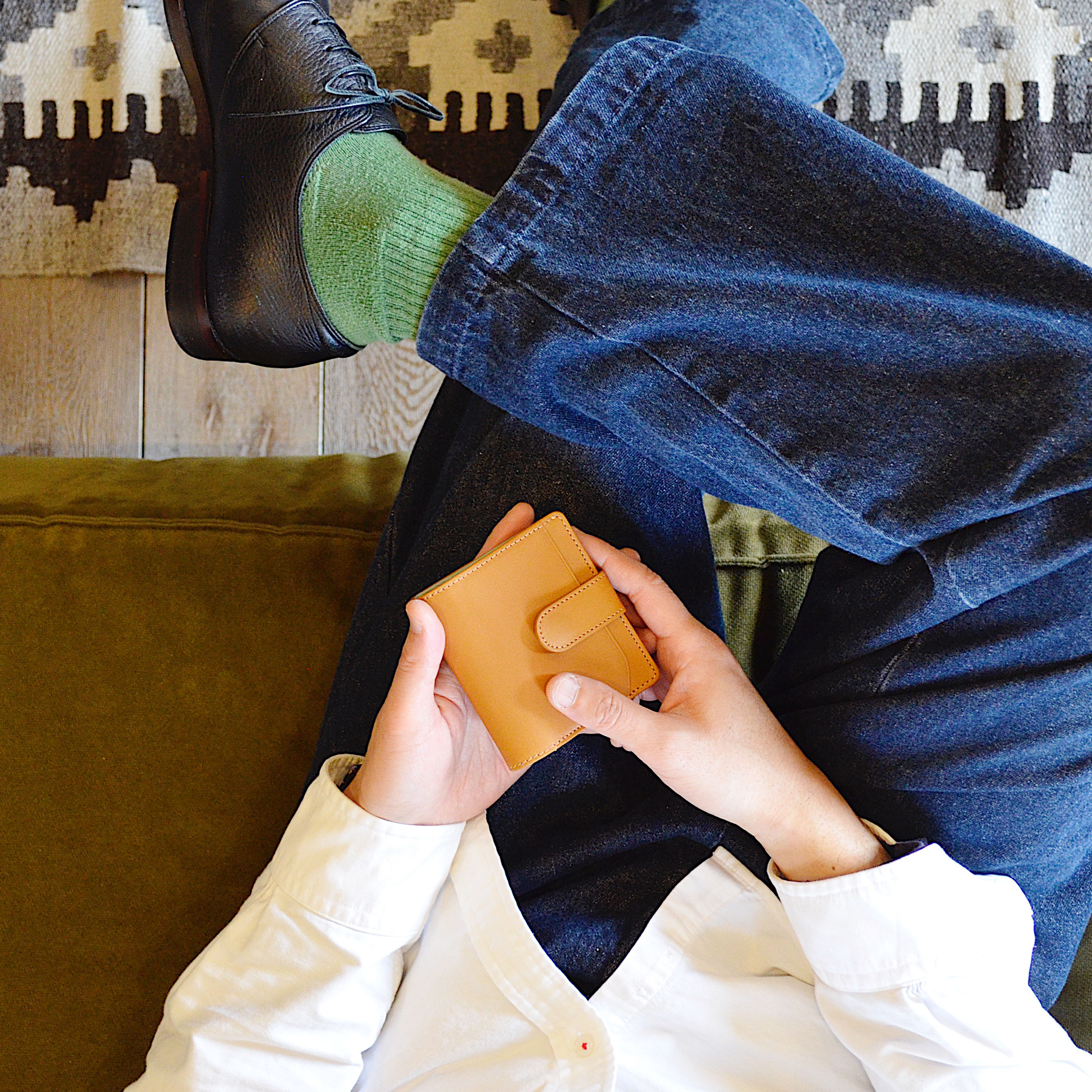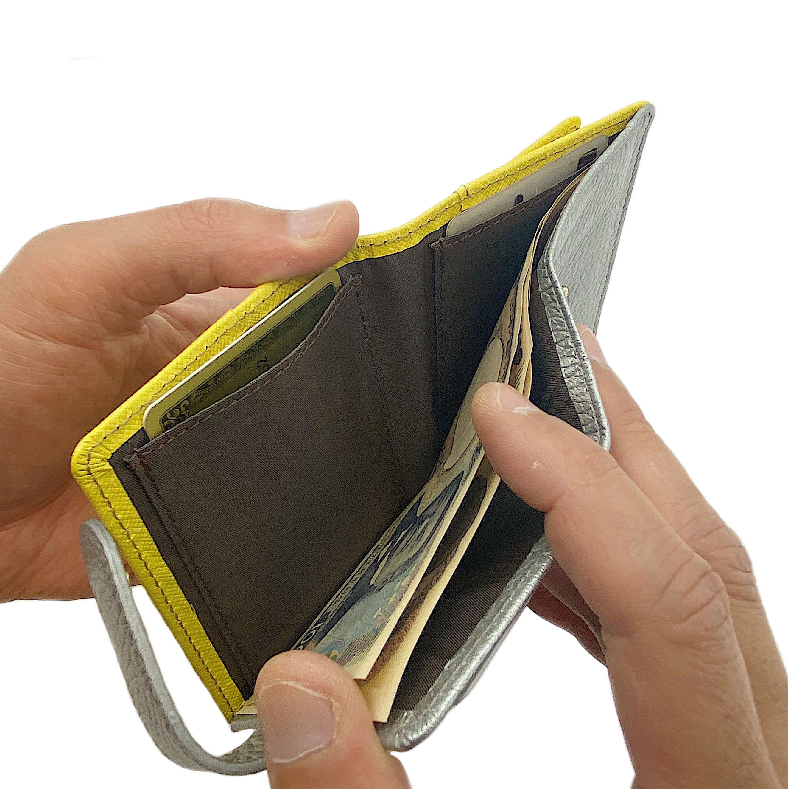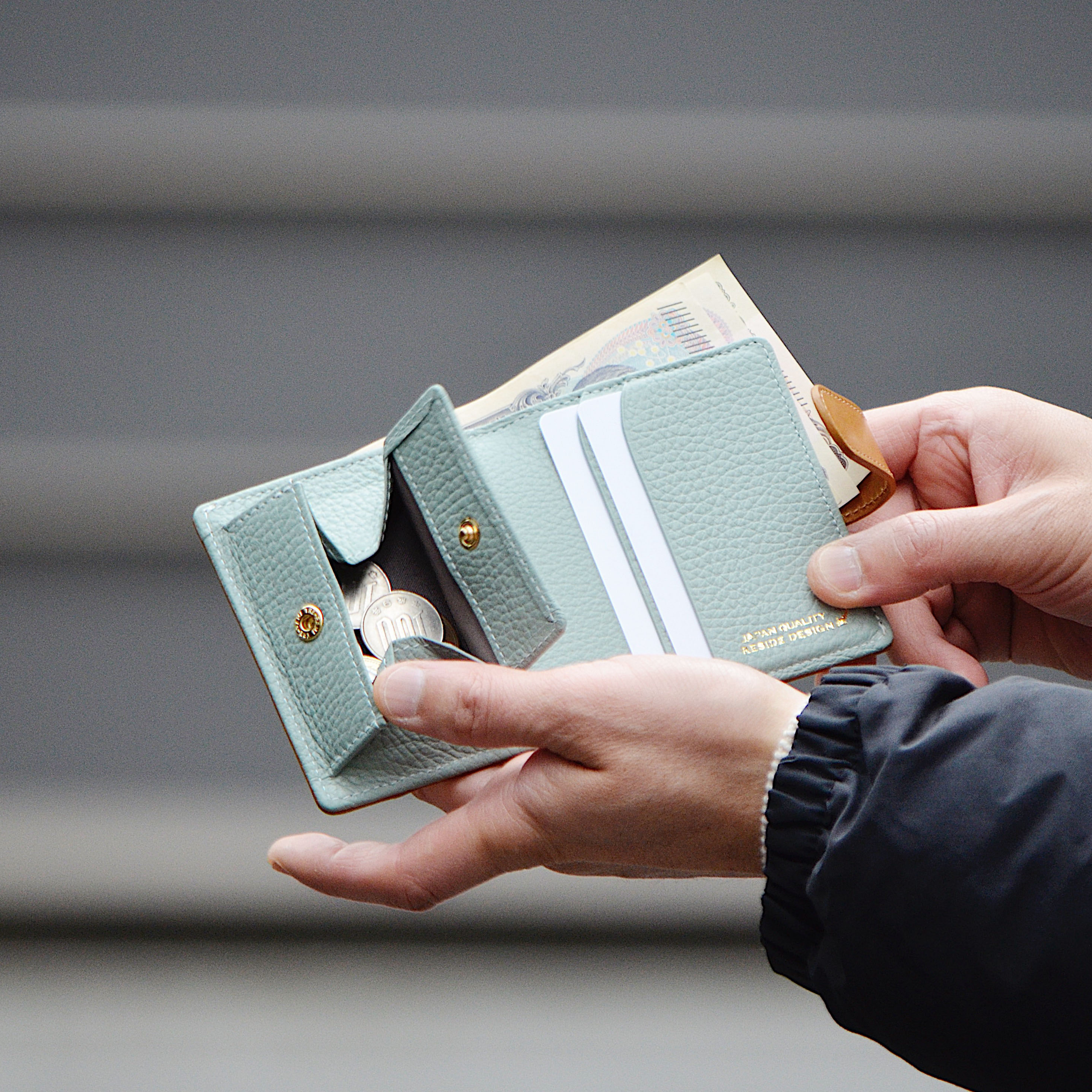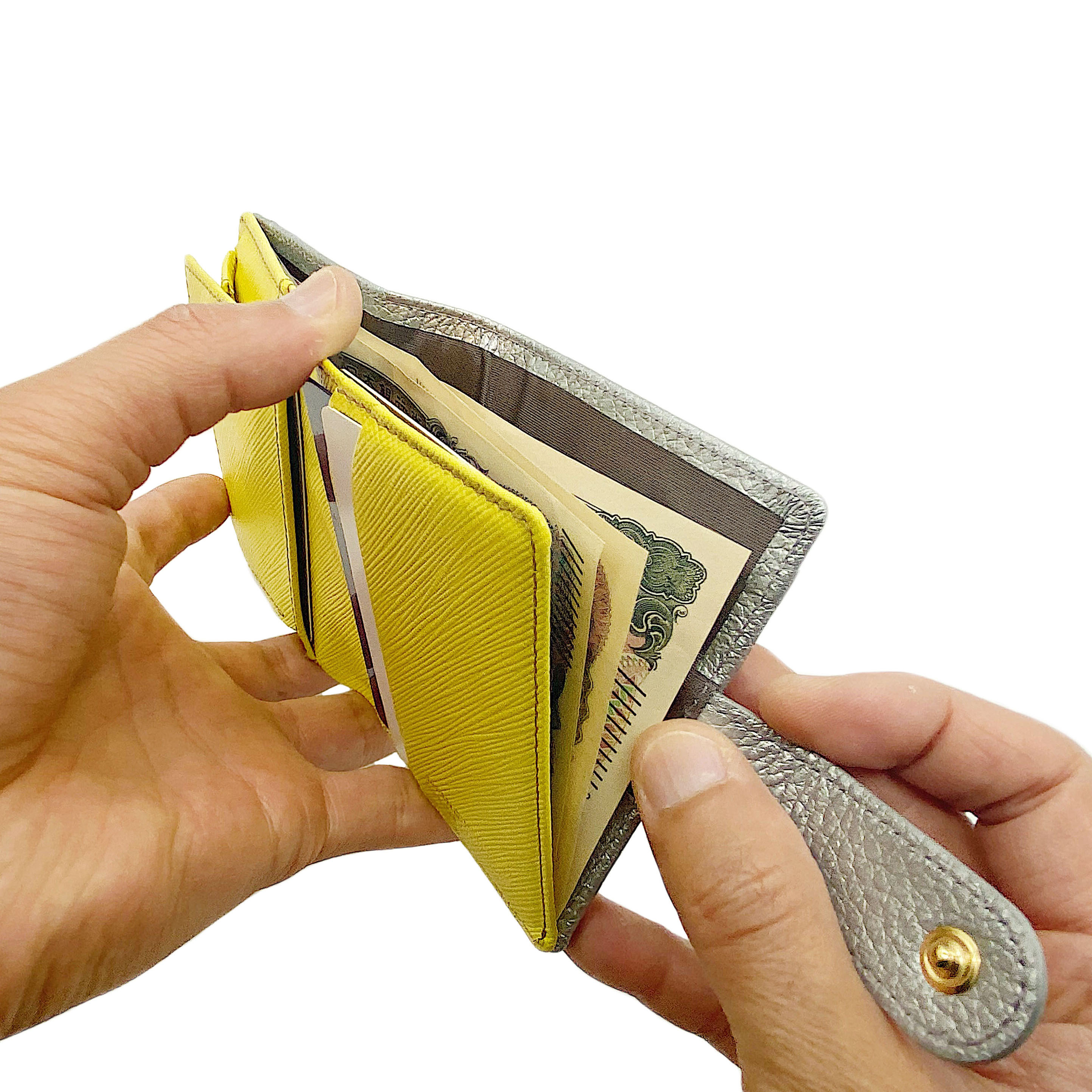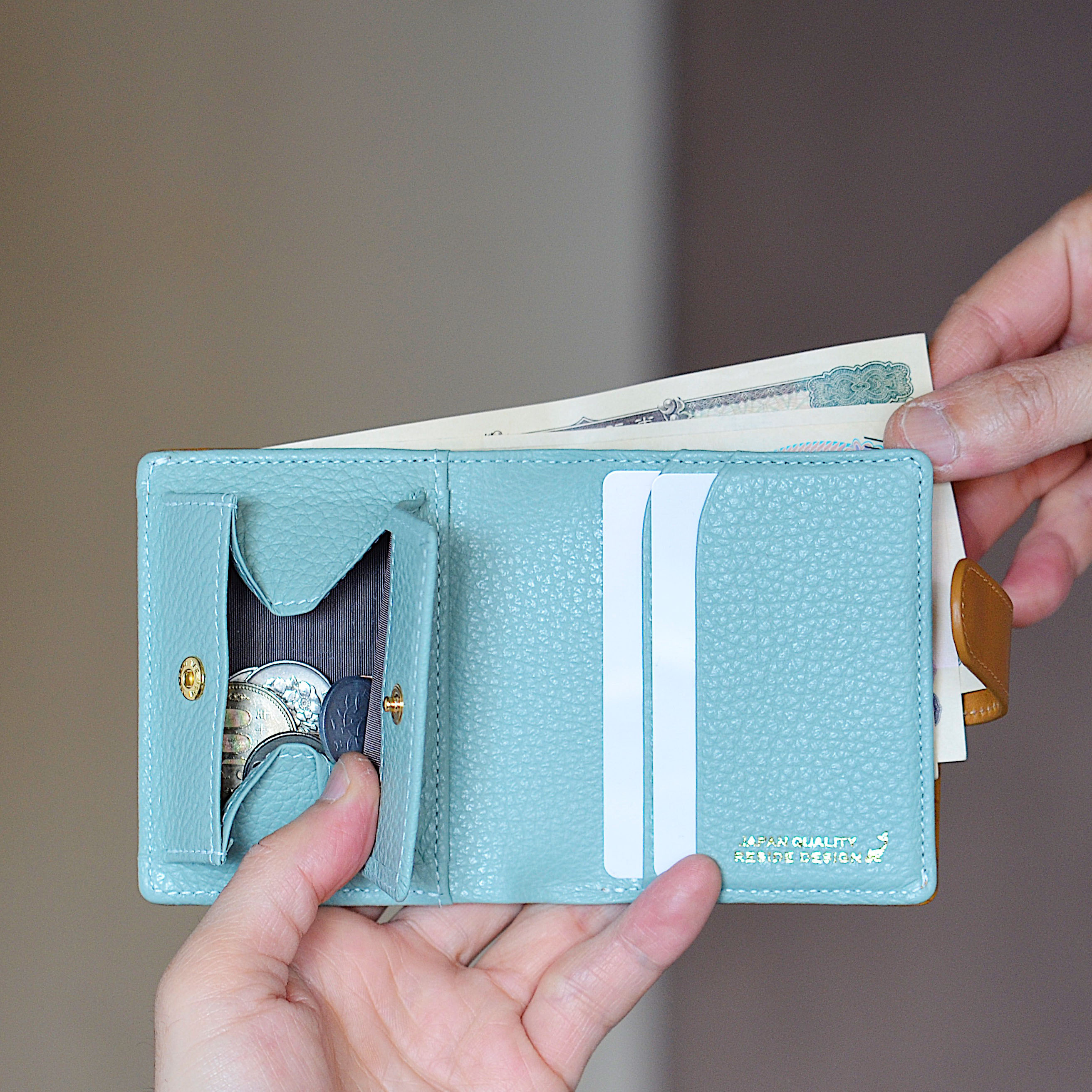 コンパクトながら使い勝手を追求した構造の二つ折りコンパクトウォレットです。